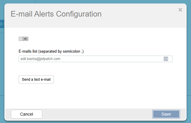 Email alerts must be configured in JetPatch before defining recipients. Ensure that an SMTP server is defined in Settings > Email Server.
