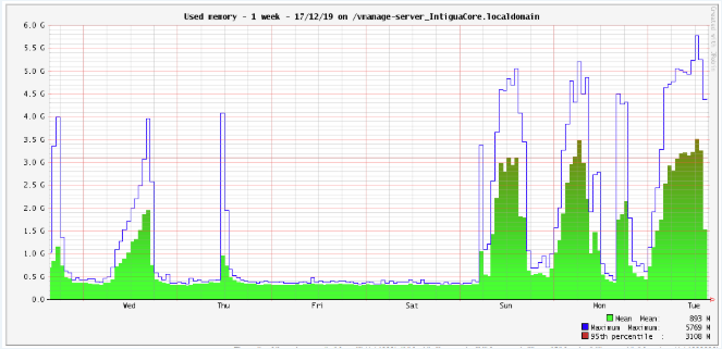 Check Used Memory: Memory allocation should follow a "chainsaw" pattern - memory increases and decreases on a regular cycle. This is expected Java RAM behavior.