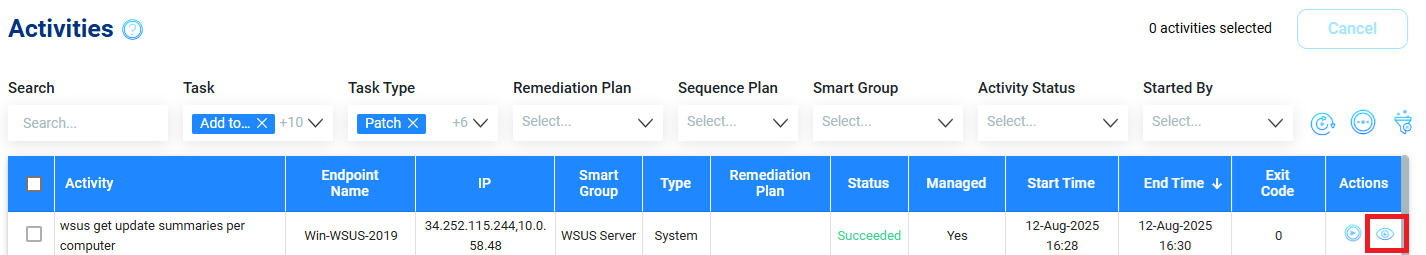 - Log in to your Jetpatch server and navigate to: /vmanage-server/patch-governance/#/endpoints/activities