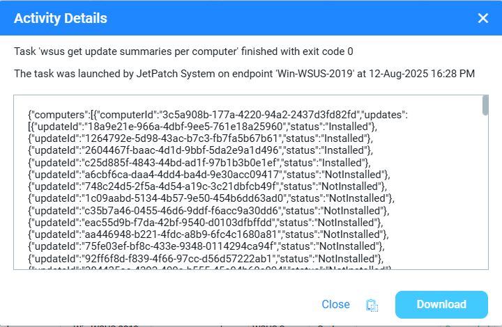 This step requires you to download and analyze Jetpatch's activity logs for WSUS.