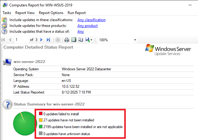 - Final Verification: Check the status associated with the patch in the log file. It should be the same as the status you observed in the WSUS console in Step 1.